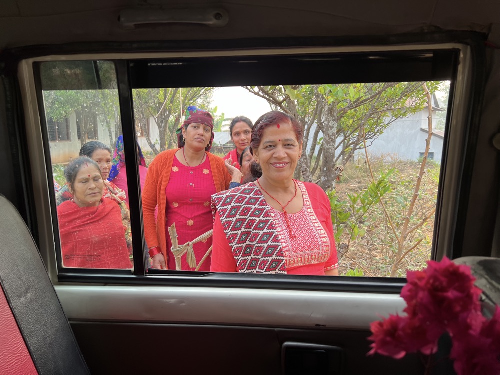 Am Morgen des 1.5. brachen wir um 7 Uhr mit dem Jeep nach Pokhara auf (auch im Gepäck: ein bisschen Magen-Darm-Probleme, denn ganz ohne wäre ja auch langweilig). Die Frauenvertreterin sowie die Frauen, die eine Ziege bekommen hatten, kamen nochmal zur Verabschiedung.