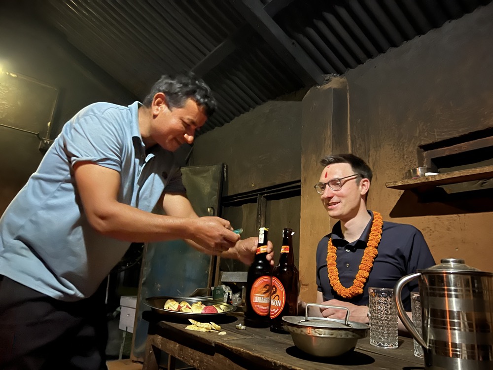 Dipendra und Gita, die beiden Direktor*innen der Schule empfingen uns gerührt. Hier hat sich einiges verändert, denn Ama (Mama von Dipendra) wohnt nicht mehr hier. Sie ist zu ihrem anderen Sohn nach Chitwan gezogen. Dementsprechend gelten hier plötzlich andere Regeln: Wir hatten ein kleines Bier (!!) und haben Ei gegessen. Undenkbar mit Ama im Haus. Danach haben wir noch ein paar, aus Perspektive von Gita und Dipendra, schöne und schlechte Nachrichten überbracht: nach 9 Jahren Wartezeit für die beiden und damit verbundenes Unwohlsein, uns in einem Zimmer schlafen zu lassen, hatten wir 2020 zwischenzeitlich geheiratet. Erlösend. Schlechte Nachricht: wir müssen kommende Woche schon wieder abreisen - eine Enttäuschung. Wir entschieden uns, so schnell wie möglich mit der Planung der Folgetage loszulegen und dann auch direkt umzusetzen. Ab Freitag, 26.04. heißt es: Entscheidungen treffen, arbeiten!